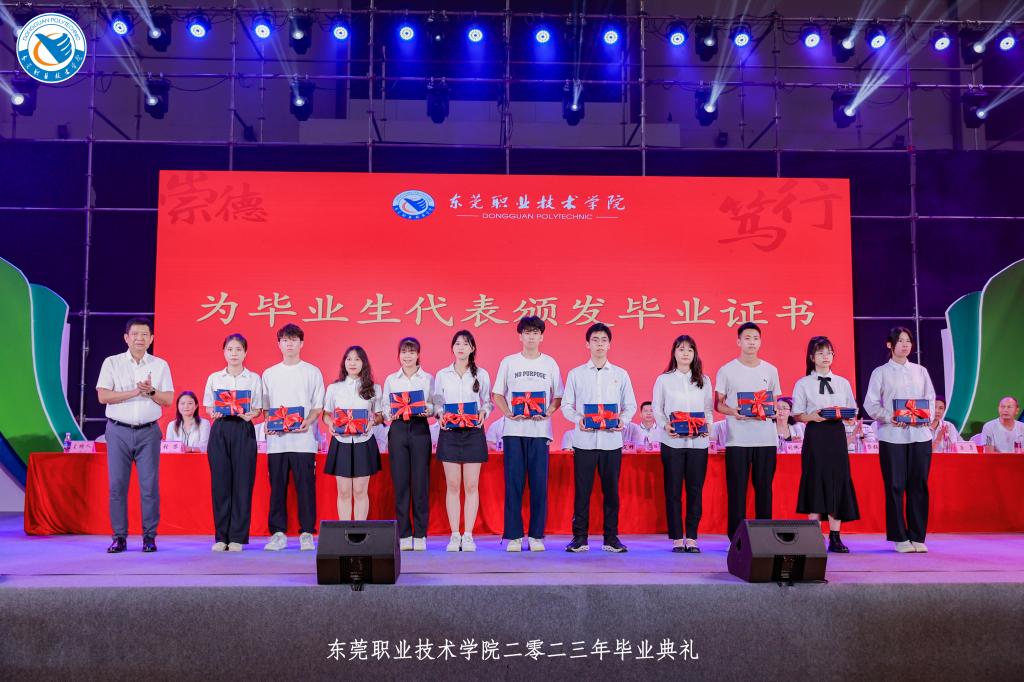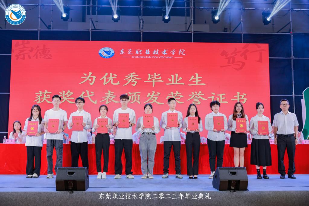 毕业典礼上,副校长刘海光宣读《关于表彰2023届优秀毕业生的决定》文件。党委副书记、纪委书记蔡东宝向获表彰的优秀毕业生们颁发荣誉证书,党委书记朱益民为毕业生代表颁发毕业证书。