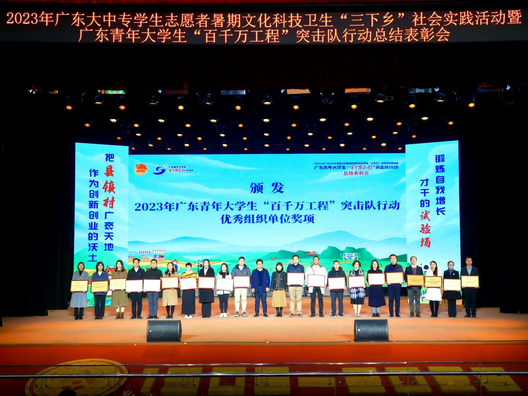 12月21日,2023年广东青年大学生“百千万工程”突击队行动总结表彰大会在华南农业大学举办,我校获评2023年广东青年大学生“百千万工程”突击队行动“优秀组织单位”。在今年的省级“三下乡”社会实践总结工作中,我校共获得14项荣誉,其中“净湖卫士——用激光雷达及人工智能技术守护东莞水域环境”等2个项目获“优秀品牌项目”称号(全省共100个)、“莞铜乡情连,多彩贵州行——九九精品视频一区在线久久久久久久久久毛片精品美女|国产99久久久久久免费看|中文精品99久久国产|国产69精品久久久久9999|精品久久久久久中文字幕无码|亚洲熟妇无码久久精品国产精品99|精品国产天堂综合一区在线石阡实践团”等7个团队获“优秀团队”称号、杨泽坤等4名师生获“优秀个人”称号。