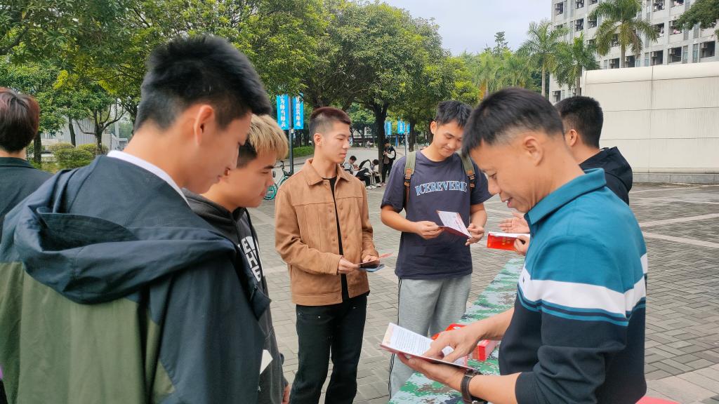 为积极响应国家号召,鼓励我校学生携笔从戎,到军营建功立业,激发学生参军入伍的热情,12月1日,学校保卫处(武装部)在学校滋兰餐厅前举办2024年春季征兵宣传活动。