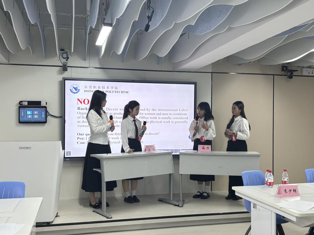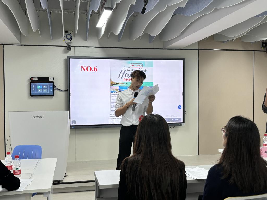 12月11日晚上,由校团委主办、商贸学院承办的我校第十四届英语口语大赛决赛在商英智训空间顺利举行。商贸学院党总支专职副书记袁少锋,商贸学院副院长戴航,东莞市未来跨境电商有限公司供应链经理简小莉,商务英语专业教研室主任云芳担任嘉宾出席了本次大赛。唯盛教育集团CEO聂伟宏,国际交流学院副院长史淑琼,商务英语专业副教授樊湘军,国际交流学院公共英语教研室主任陈培珊,东莞市东莞中学松山湖学校教师周杨青担任本次决赛评委。