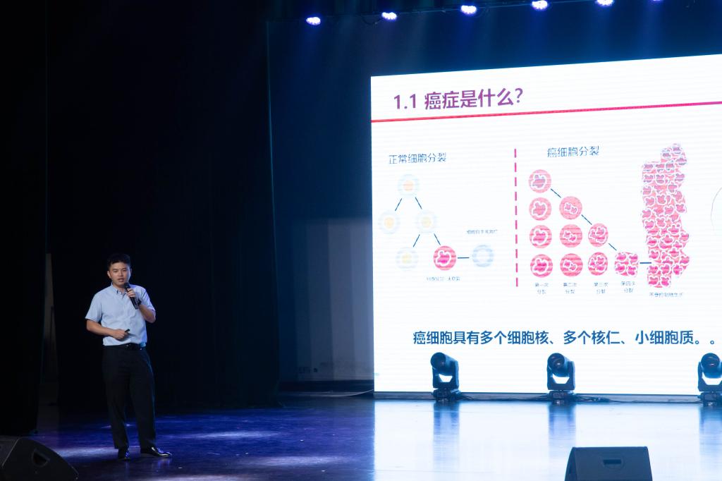 肿瘤临床医学研究所副研究员徐晓博士则带来了一场“科技感爆棚”的分享——《硼中子俘获治疗:晚期癌症治疗中的“狙击手”》,通过生动有趣的展示,揭秘了硼中子俘获治疗技术(BNCT)的原理:像“特工”一样精准定位癌细胞,实现“定点爆破”。