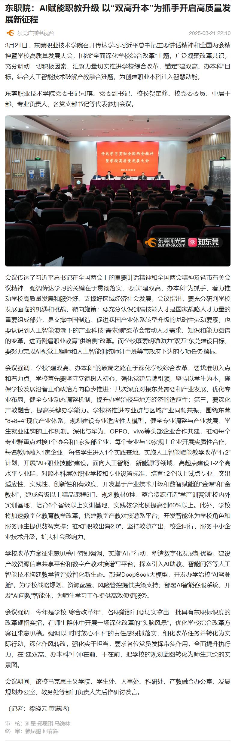 【知东莞】 东职院:AI赋能职教升级 以“双高升本”为抓手开启高质量发展新征程